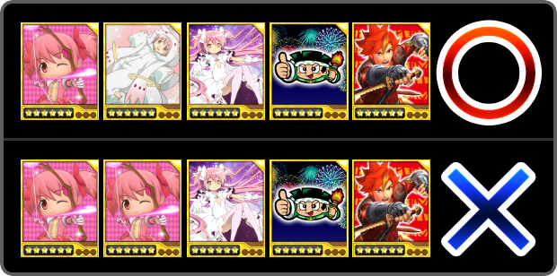同アイコンは同じデッキに2枚以上セットできませんが、同キャラクターでも別のアイコンであればセット可能です。