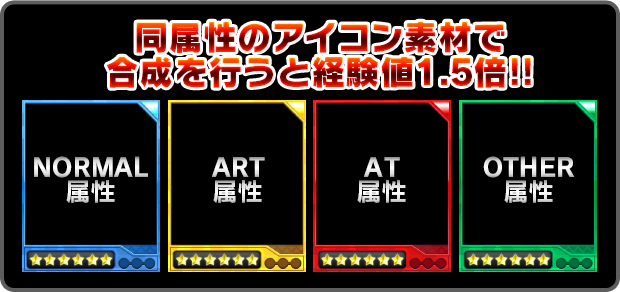 同アイコンを素材として合成すると、10%の確率で1段階上限突破します。