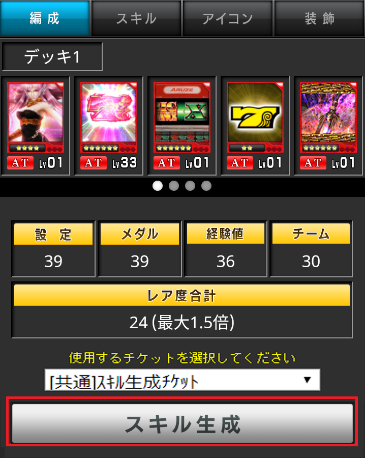 ①デッキ編成画面で「スキル生成」から「使う」をタップ!