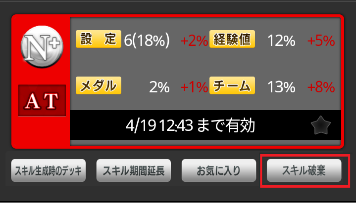 ※スキルは「お気に入り」設定をしていない場合、有効期間が終了すると自動的に破棄されます。