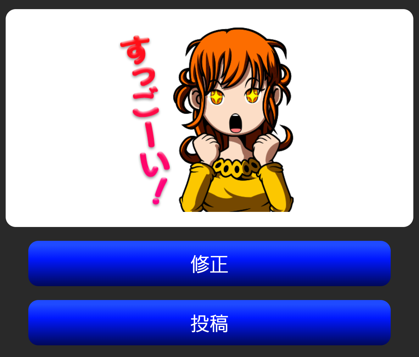 選択したスタンプが赤枠に囲まれますので、もう一度選択すると投稿確認画面へ遷移します。