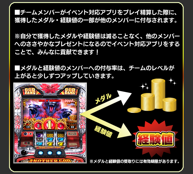 ※チームレベルアップ報酬は、同一レベルのチームレベルアップ報酬を複数回受領すると報酬量が減少していきます。